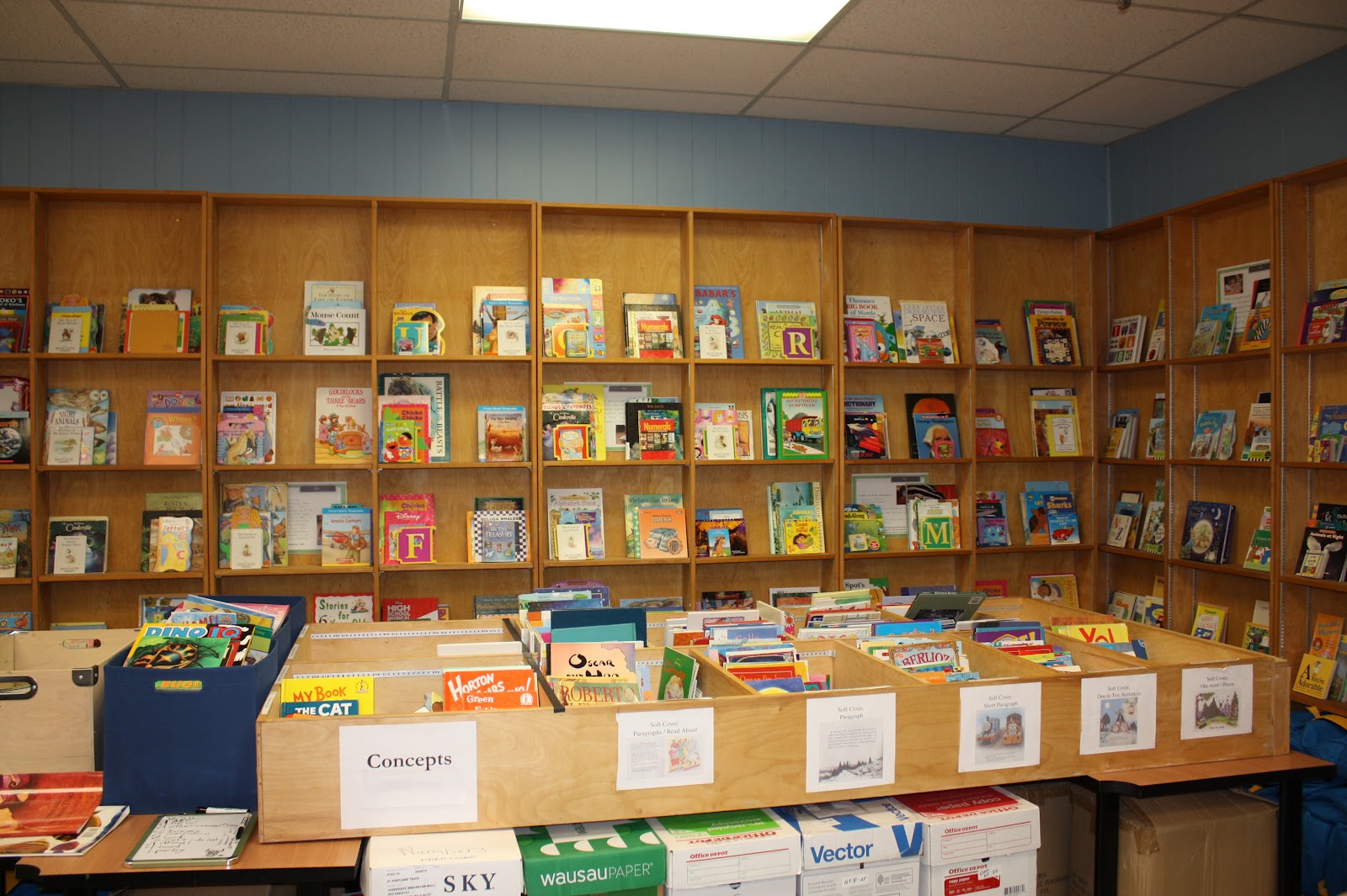 Locating the double doors with a small “Book Bank” sign in the window, the girls and I climbed a few steps into the entry. Children’s books surrounded us; in bins, on the tables, lining the walls – this “bibliovore” found paradise! Two rows of tables and chairs occupied the center of the room. When Pastor’s Family arrived, we grabbed six spots together and waited for instructions.